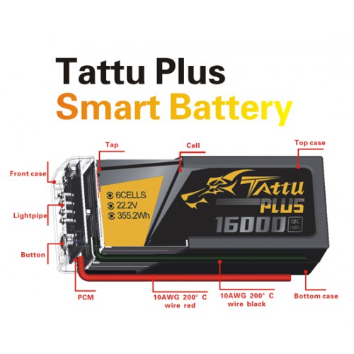 معرفی باتری هوشمند لیتیوم پلیمر 6 سل 10000 میلی آمپر Tattu Plus 25C