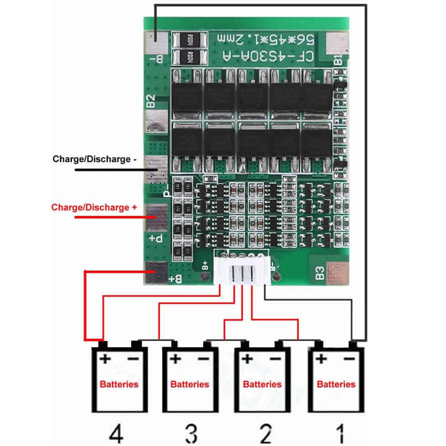برد BMS باتری لیتیوم یون 4 سل 30 آمپر