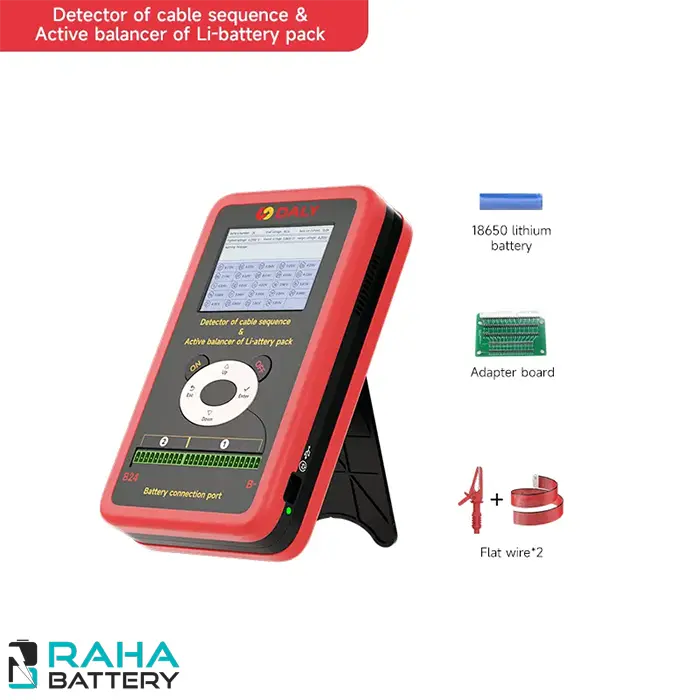 دستگاه تست و بالانسر فعال DALY مخصوص باتریهای لیتیومی 3 تا 24 سل با جریان بالانس قابل تنظیم تا 10 آمپر. دارای قابلیت شناسایی خودکار نوع باتری (Li-ion، LiFePO4، LTO) و بررسی ترتیب کابل، اتصال معکوس و قطعی مدار. امکان نمایش اطلاعات لحظهای شامل ولتاژ کل، بیشترین و کمترین ولتاژ سلها و اختلاف ولتاژ. امکان تنظیم پارامترها و هشدار بوق پس از پایان بالانس.